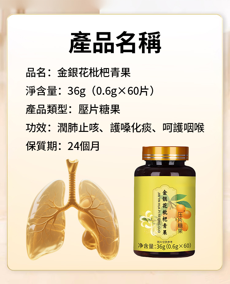 【肺部呼吸淨化片】金銀花枇杷青果片