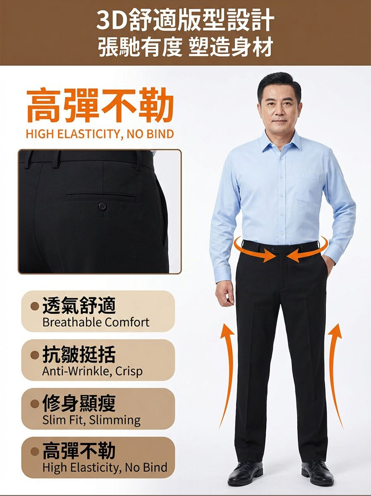 高彈西裝休閒褲