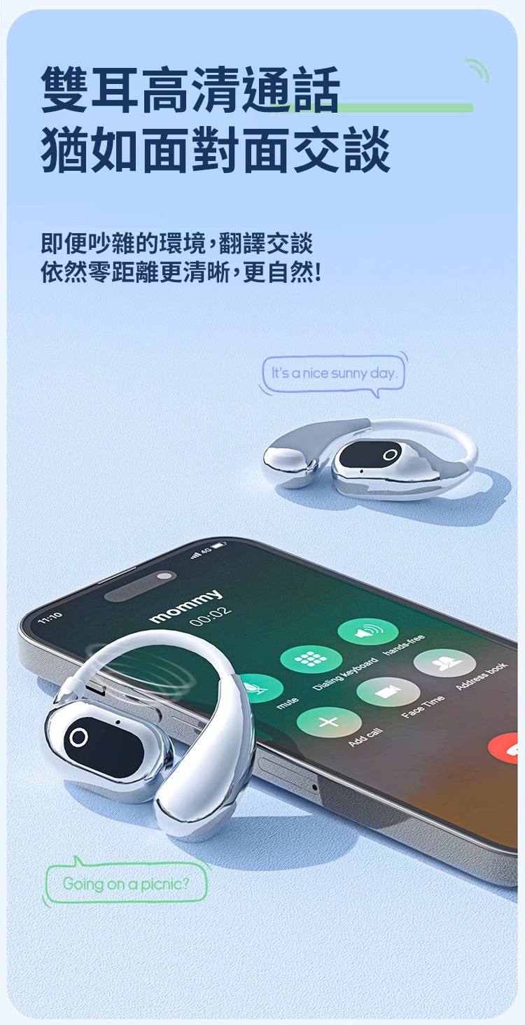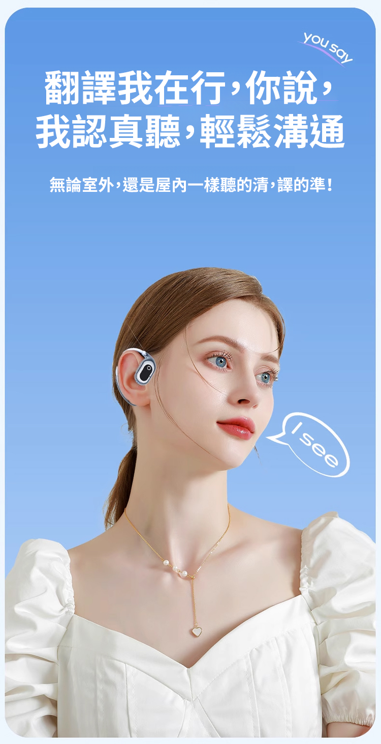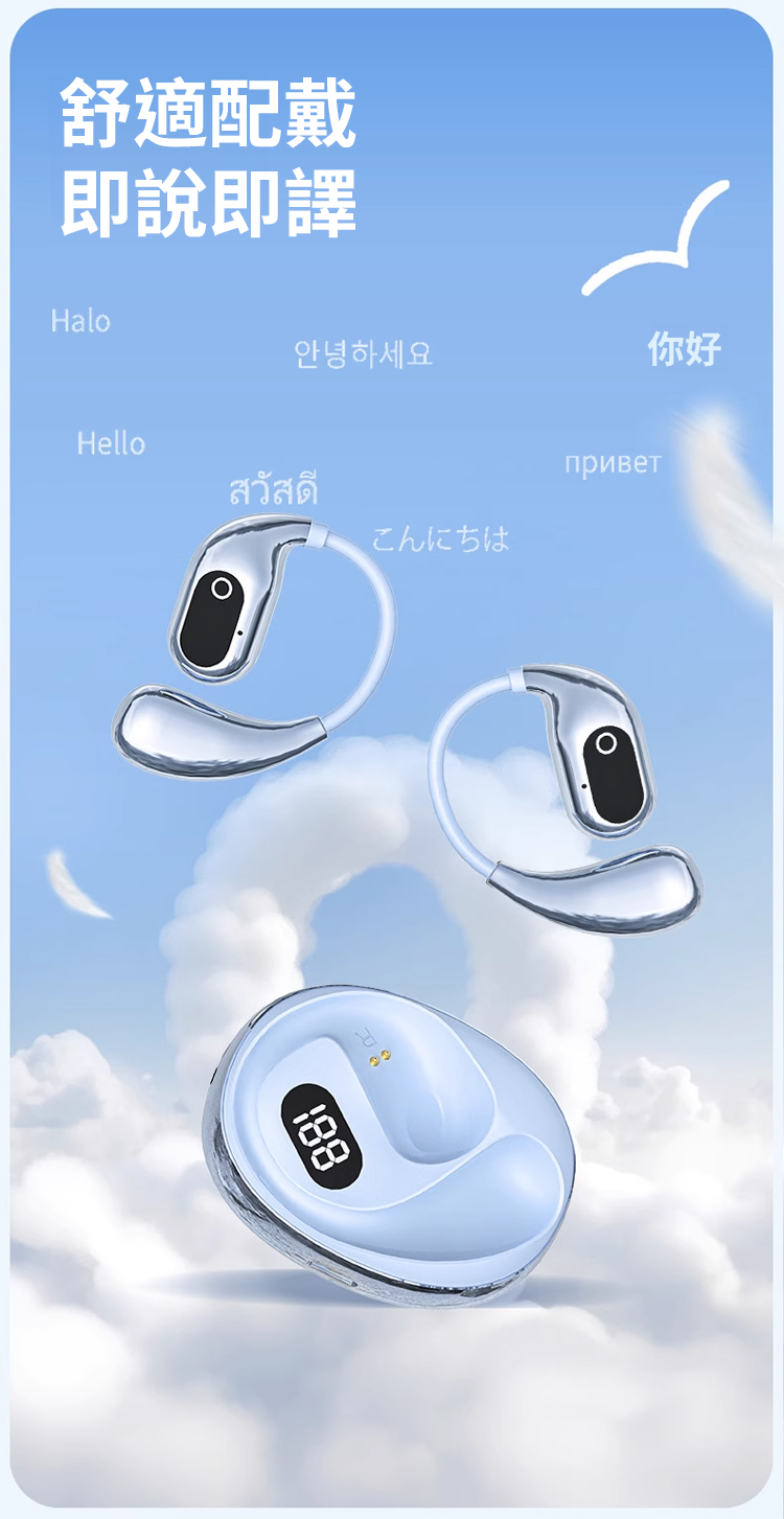 AI智慧翻譯矽膠掛耳藍牙耳機