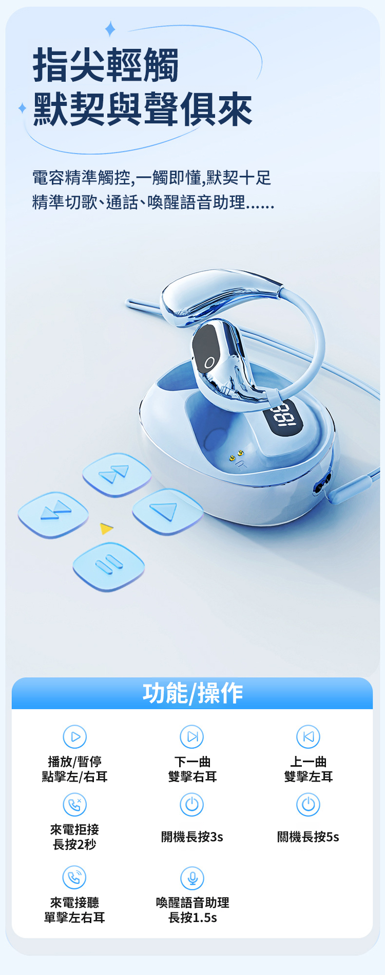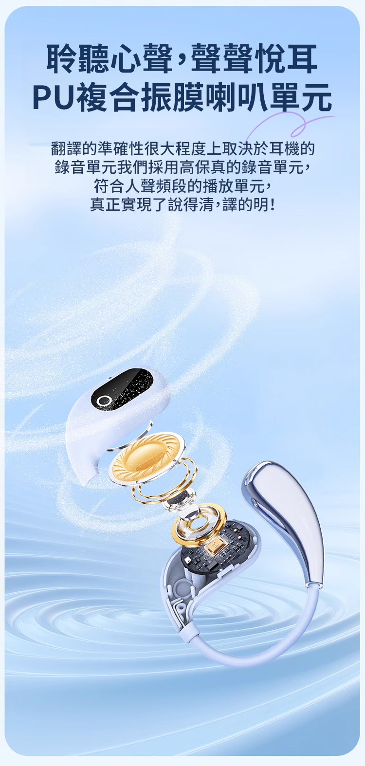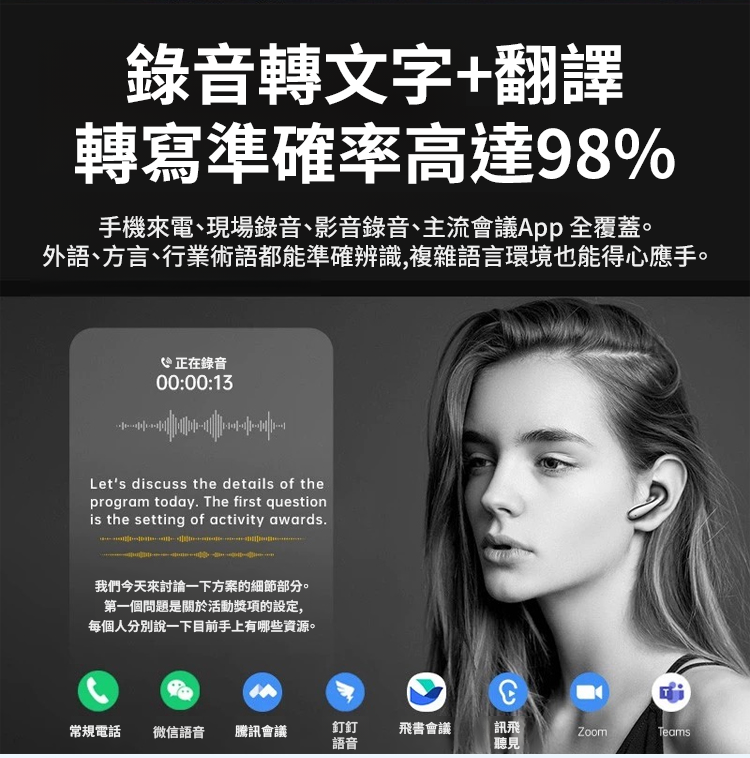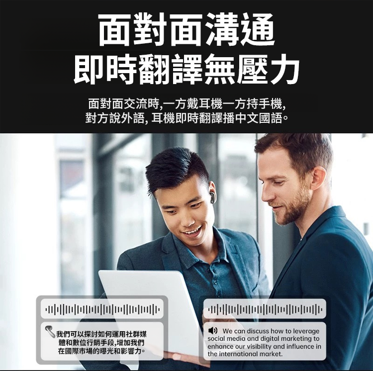 AI智慧翻譯矽膠掛耳藍牙耳機